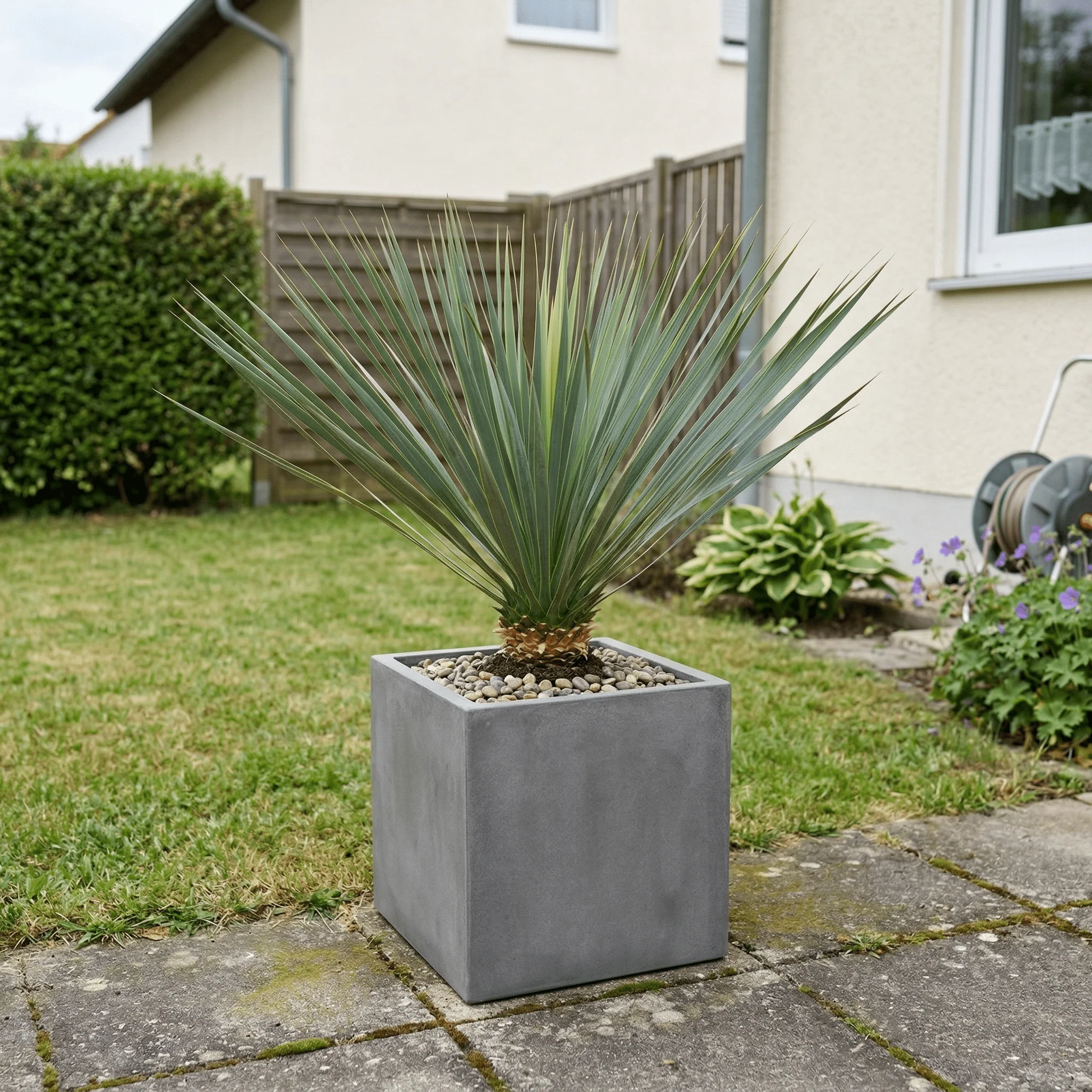 De Yucca is een echte zonliefhebber en heeft weinig water nodig. In de winter kan de Yucca Rostrata buiten gevoelig zijn voor vocht. Zorg daarom voor een goede drainage in de pot en bescherm de plant in natte maanden. Overmatig vocht kan leiden tot rot, wat je wilt voorkomen!