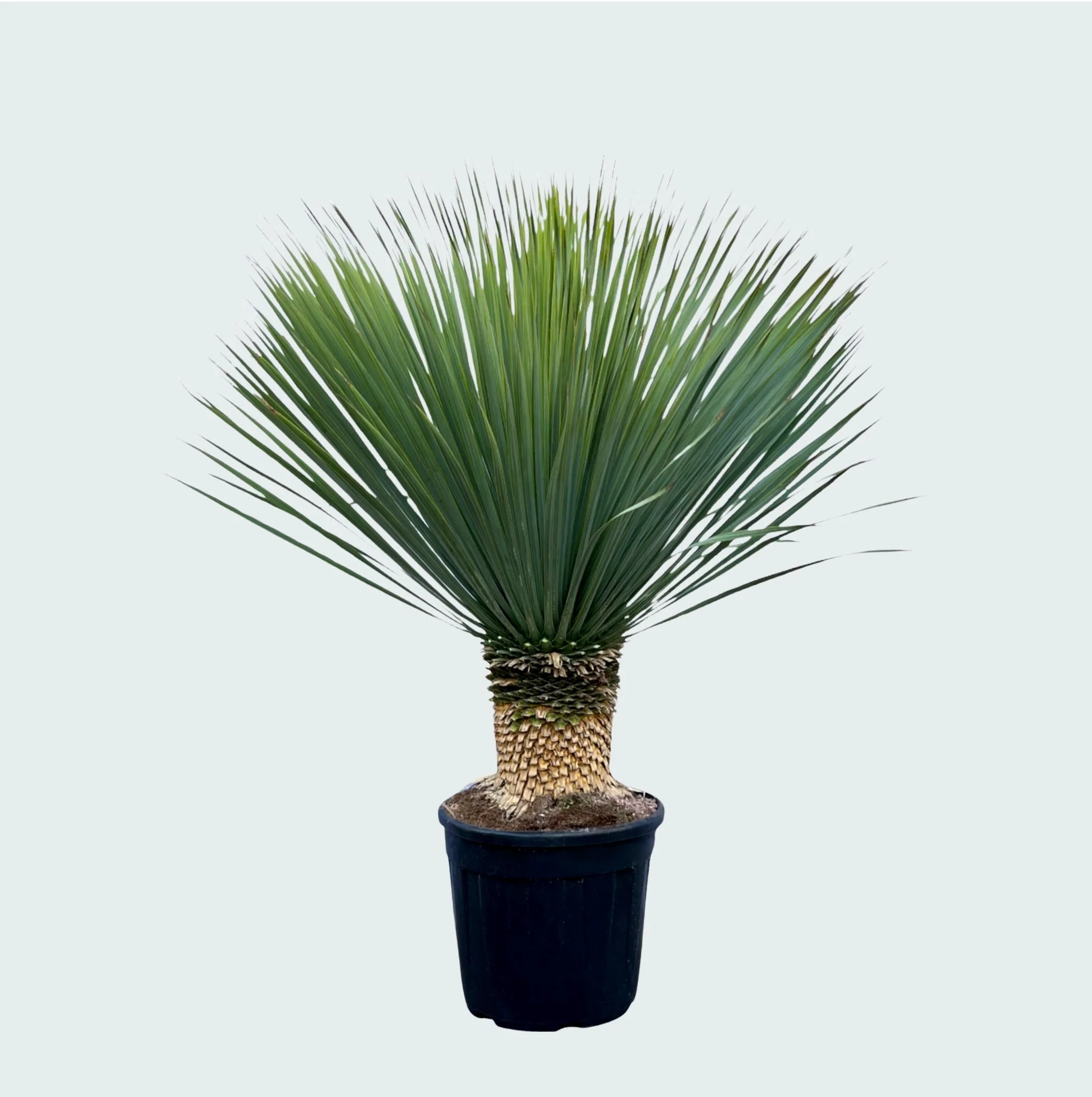 De Yucca Rostrata is een prachtige en bijzondere verschijning vanwege zijn unieke vorm welke je niet vaak tegen zal komen. De kroon met daarin lange, heldergroene, grote bladeren van zo’n 40 tot 60 centimeter die recht omhoog staan maakt de Yucca Rostrata een echte eye-catcher. Oorspronkelijk komt de Yucca Rostrata uit Noordoost-Mexico, West Texas en de Chihuahua woestijn.